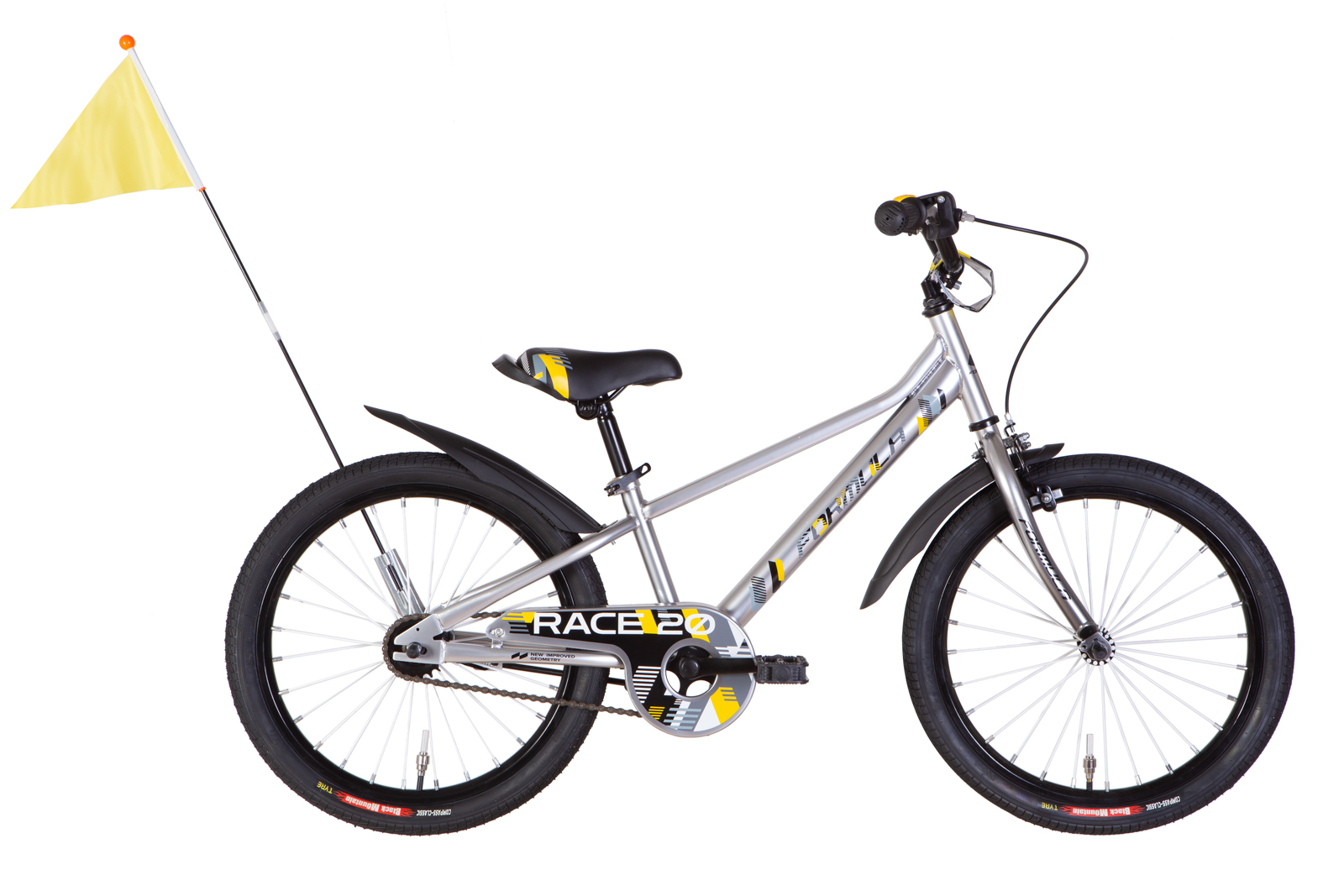 Rower ST 20″ Formula RACE piasta tył z hamulcem, rama-10″ szary z żółtym, błotniki Pl 2024